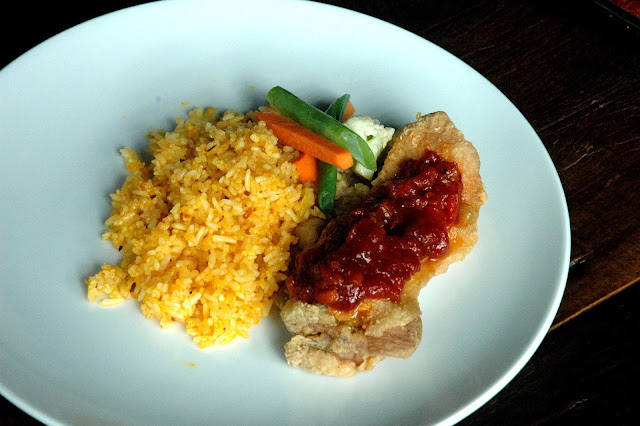 Boneless Fried Chicken, topped with tomato fondue and served with chorizo rice, perfect for a light yet flavorful lunch. The tomato fondue bumps up the flavor of the crisp chicken, and the rich chorizo rice simply completes the flavors of the dish. Each Lunch Special for only P 199. Not a bad deal at all for lunch.