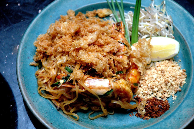 No Thai feast is complete without the Phad Thai Gung Sod with its familiar mix of fried rice noodles, succulent prawns, crushed peanuts, chili flakes, bean sprouts and tart tamarind sauce. As with many Thai dishes, the full range of flavors come into play in this one dish.