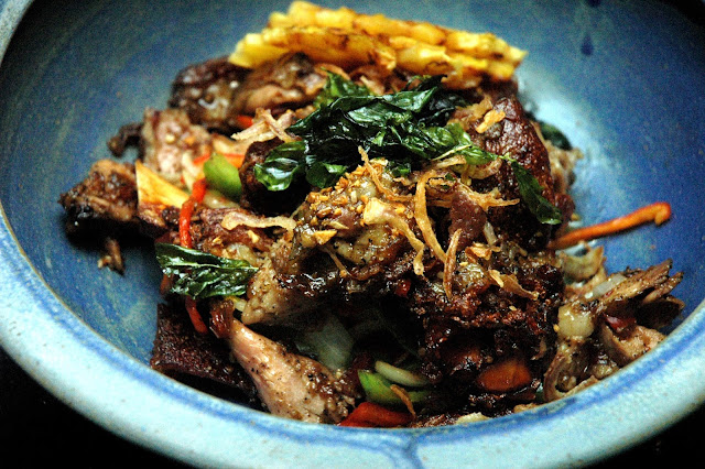 The Gai Ta Krai, savory grilled chicken with lemongrass and galanga, offered tender and juicy bites with subtle smoky hints capped by a dip in chili sauce for that flavorful burst of soothing heat.