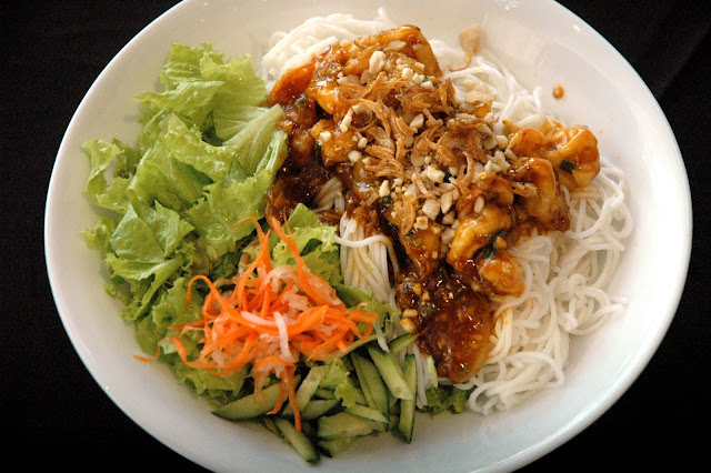 The light and refreshing noodle dishes are always a favorite, like Bun Tom (P 360), a dry noodle dish topped with sauteed buttered prawns, vegetables and roasted nuts...