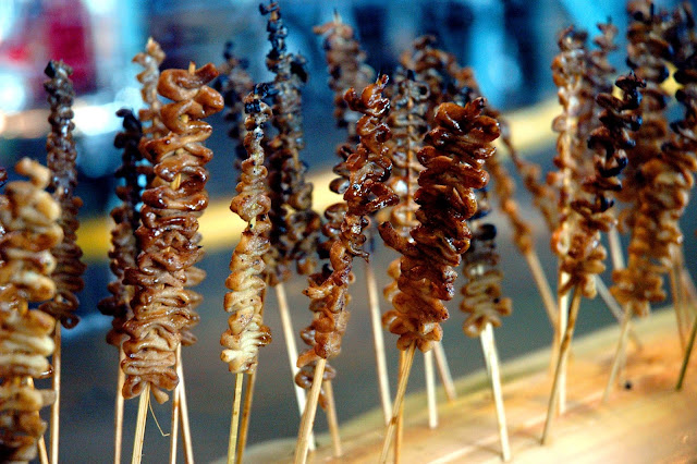 But there's more, so much more. At the Tusok-Tusok Station, diners can find other Filipino Street Food staples including the popular Fishballs (L) drizzled with a sweet and spicy sauce and Kwek-Kwek (R) or fried quail eggs with that distinctive orange tint.
