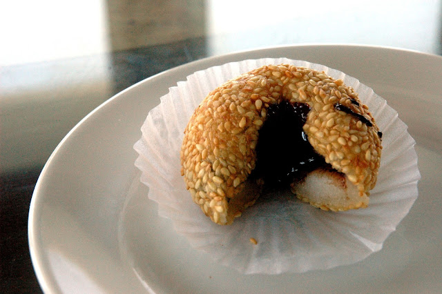 One bite of the deep-fried sesame ball releases a burst of rich chocolate, adding a decadent note to this traditional dessert.