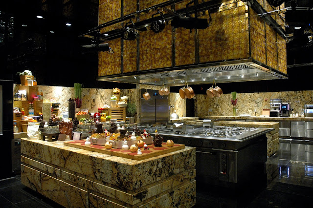 It's buffet dining elevated to a grander scale with its unique and refreshing live stations offering made-to-order dishes with a variety of flavors and cuisines from around the world. Subdued wooden earth tones add a comforting warmth contrasting with the sleek stainless steel sheen of the open kitchens. The Grand Kitchen exudes a clean and contemporary feel as well as understated elegance, just perfect for that epic holiday feast.