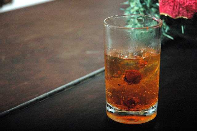 A refreshing and soothingly sweet and mildly tart cocktail blended with Akashi Shin Whisky Umeshu, a special whisky infused with sweet Japanese plums and bitter, sweet and sour champoy opens up the palate before the much anticipated dinner...