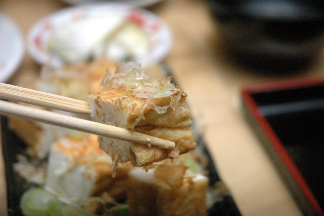 ...and the Deep-Fried Aged Tofu (P 200) or Atsuage topped with scallions and thin bonito flakes, both excellent starters before the mains.