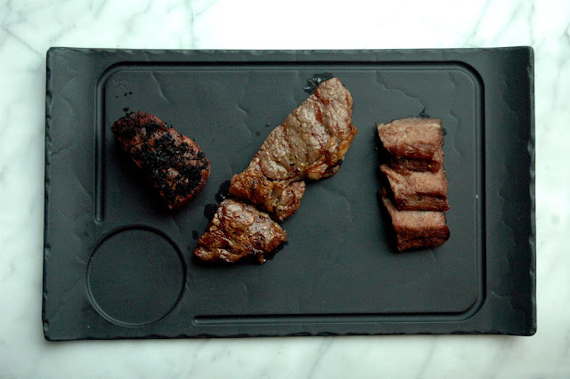 The succulent scallops, sliced paper-thin, delivers a vibrant briny sweetness followed by the distinct notes of the fruits, vegetables and herbs coming together in a rich burst of flavors to open up your palate for the main course. After quick work on the starter, and this one goes by in a flash you'll want some more, the steaks are served ...