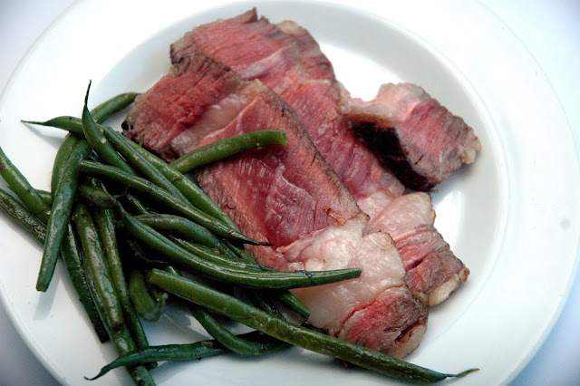 Perfectly grilled to medium rare with a juicy pink center, you don't need to add any sauce to this slice of premium beef. A pinch of rock salt and nothing else, with a side of buttered French beans completes this dish for me.