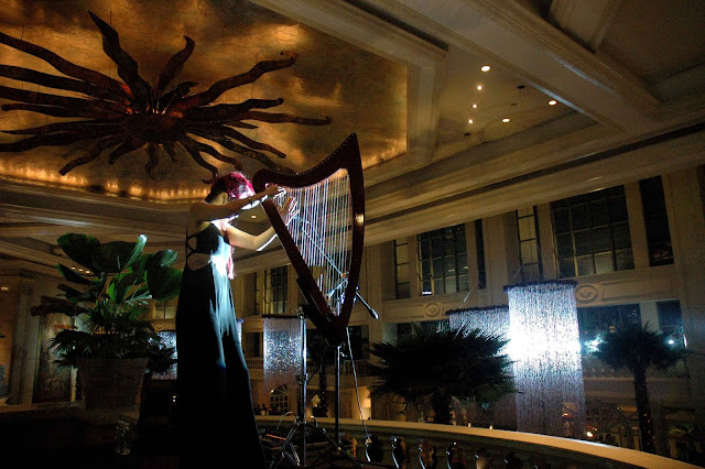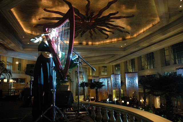 Then, from the other end of the lobby high above the elegant staircase, the dreamlike notes of a harp began to float in another inspired performance...