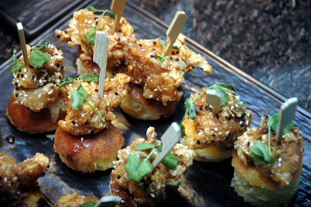 ...to Crispy Sriracha Chicken on a light and fluffy air pancake, Beef Curry Puff with Togarashi Aioli, Prawn Samosa and many more...