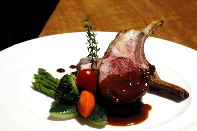 ...and have one of the chefs at the carving station plate some US Rack of Lamb with vegetables.