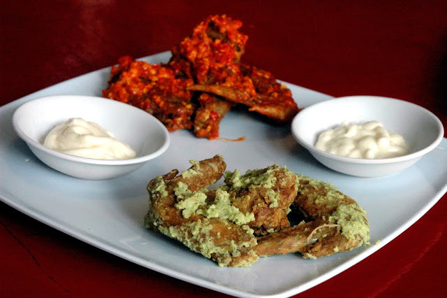 Now, for the serious stuff. Chilli & Ink's spicy duo, the Hot ng Ina Nyong Lahat (Level 3 on Chilli & Ink's spice scale) and the Wasabi Wings. Chilli & Ink's spicy wings come in five different levels, starting with Hot ng Ina Mo (Level 1) to Hot ng Ina Nyong Lahat Challenge (Level 4), so choose your preferred level of heat. I go for Chilli & Ink's Level 3 wings, and seeing the wings covered in chili seeds almost made me pause for a moment. Using the local sili labuyo, the special sauce is aged with the seeds for concentrated flavors. A few bites of the Level 3 wings gradually built up the cooling heat, and a few more bites numbs your lips. Sensing a tear about to fall, I pull my head back and go for another bite. There's just something so refreshing, almost liberating, with spicy food. And the Wasabi Wings are no pushover, with each wing covered in pure wasabi enough to clear your sinus.