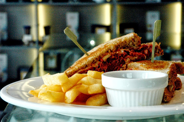The Cake Club's Reuben (P 385), generously filled with homemade and cured corned beef, sauerkraut and emmentale cheese, a personal favorite. The beefy flavor of the briny premium brisket is enhanced with the sharp sauerkraut and emmentale for light yet filling meal.