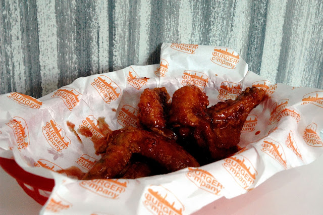 New York Buffalo Wings with Louisiana Barbecue Sauce (P 135 Bantam Weight/6 pcs), covered in a sticky, sweet, smoky glaze. Burger Company's wings are perfectly cooked, with the outer layer retaining its crispness under the barbecue glaze.