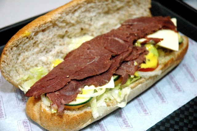 There's a new joint specializing in subs, or hoagies, offering fresh sandwiches with excellent value. Not your typical 6-incher, but a larger 8-incher with more filling, more options to choose from at reasonable prices. Very cool.