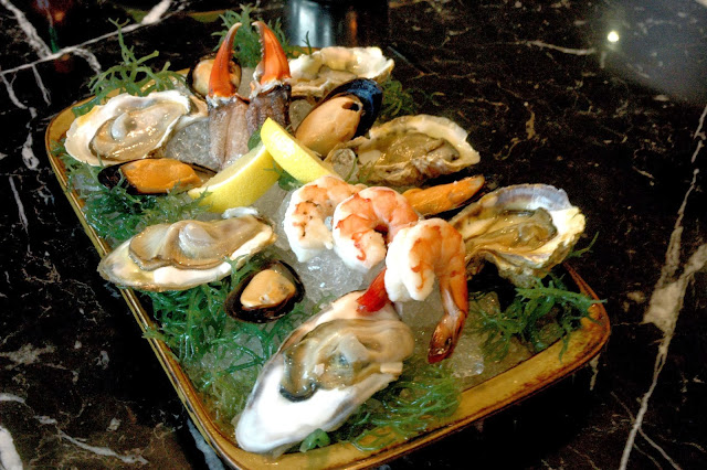 Cold Mixed Seafood Platter (P 1,100), with fresh oysters, plump shrimps, mussels and crab claws on ice. An elegant starter with the Cowrie Grill's elegant touch, best paired with the Cowrie Grill's extensive wine list and cocktails.