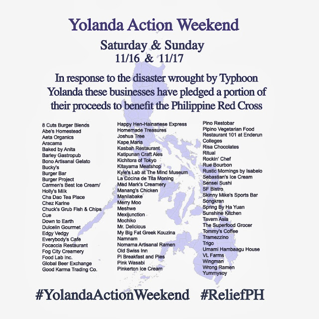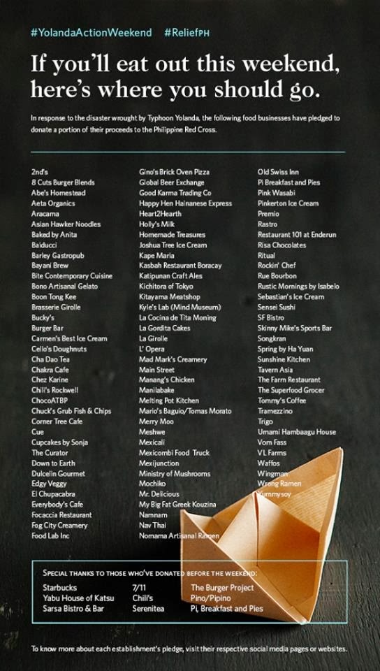 And as of today, here are the latest restaurants participating in the Yolanda Action Weekend...
