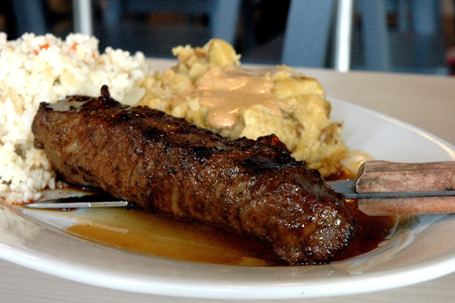 And now with a full menu, you can have a comforting meal and then some ice cream all in one place. Good food and great value, always a winning combination. And Mad Mark's offers a choice of grilled beef, chicken and pork dishes to suit your craving. Choosing your main dish at Mad Mark's is simple: Just select your main dish, choose from one of Mad Mark's special grilling sauces, and lastly, choose two sides. Mad Mark's Signature Steak, (P 225 Healthy 150g/P 285 Regular 200g/P 395 Feast 300g), USDA Angus Striploin with Bootstrap Steak Sauce, and a side of Smashed Potato and Rice. And for the price, this steak dish is a winner. Other sauces include Cream Mushroom Sauce, Roasted Nut, Ragin' Cajun, and Johnnie Double Black to go with their beef, chicken and pork dishes. You also have options for different sides, like Garden Grains, Grilled Corn Cob (seasonal), House Salad, and Bacon Potato Salad.