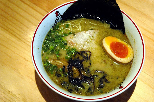 At first, the intense flavors seem to be coming from the spicy heat, but after a few more slurps, one can taste a subtle hint of citrus to round out the flavors. The rich, creamy and almost buttery broth blend well with the spicy yuzukosho flavor, adding a flavorful punch. If you want your noodles with a little bite, the Katamen (hard) or Barikata (very hard) works well with the intensely flavored broth. A little broth, some noodles, a piece of the tender chashu pork, some pickled vegetables...perfect. And with the robust flavors of the broth, there's really no need to add more condiments. The enticing bright green color is like a visual cue to just go right in. And if you enjoy a little heat, this one's a winner.
