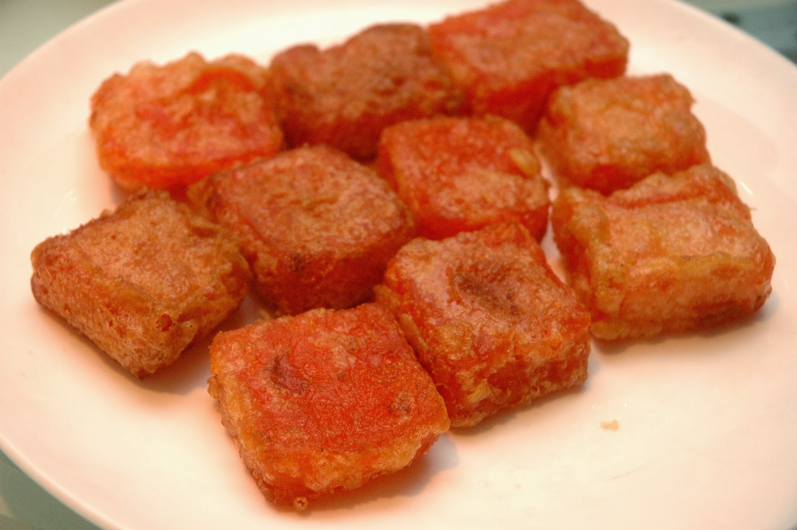 Crispy Fried Nian Gao, lightly coated in egg and fried, another traditional Chinese New Year treat. Crisp on the outside, soft and chewy inside, with just the right sweetness. Great with hot tea.