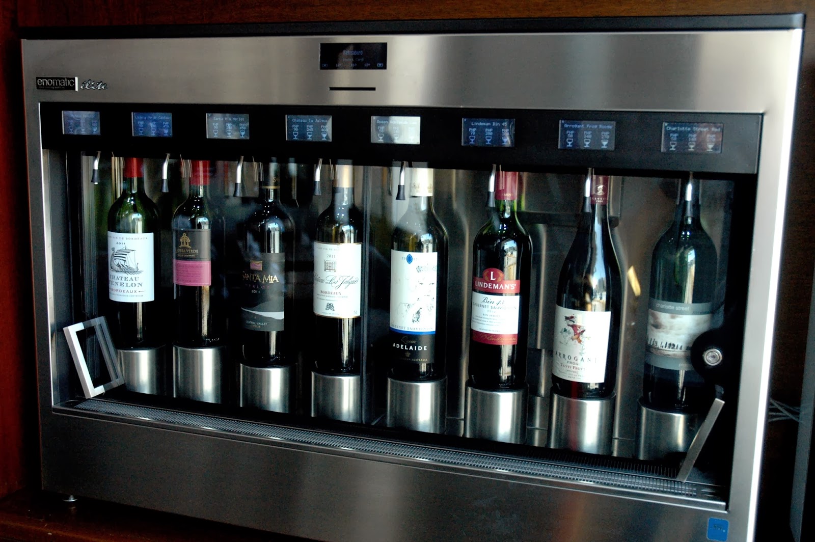 A customized wine dispenser allows guests to sample different vintages with a push of a button. Magosaburo's cuisine follows tradition, and is evident in each and every dish. But one finds a duality of contrasting themes at Magosaburo, where traditional dishes are prepared with the most modern techniques. The best of the old, preserved and updated, with the latest in technology. Tradition meets high tech, and the wine dispenser is just one of the cool things you can find at Magosaburo.