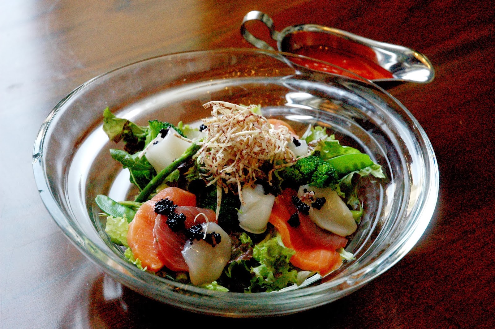 Mixed Sashimi Salad with Tomato Dressing (P 480), one of the salad options in Magosaburo's signature Sukiyaki Sets, is yet another dish that combines fresh and clean flavors. The addition of fresh and premium sashimi adds a subtle sweetness to the dish, balanced by the tart tomato dressing.