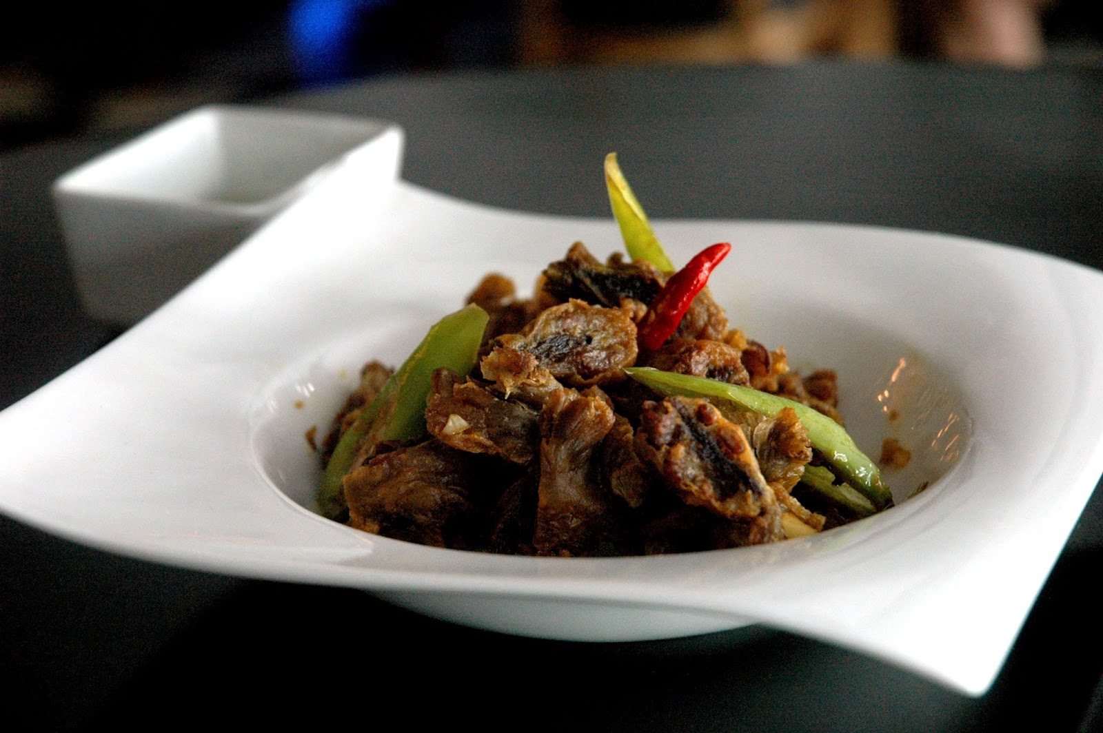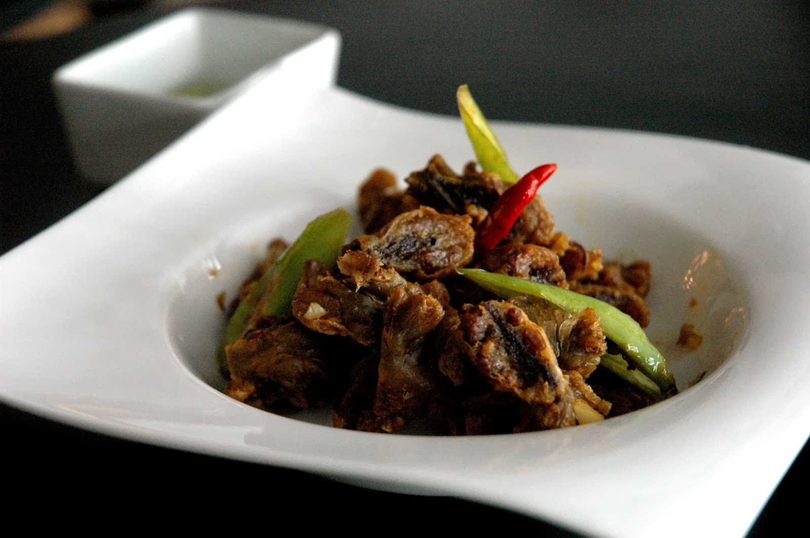Then, Chef Maj serves the first of The Glass Door's new dishes, starting with the Chicharon Bulaklak (P 180), crunchy chicken innards with Chef Maj's special sauce. Perfectly crunchy with a layer of heat, the richness of the crunchy chicharon is tempered by the spicy heat for balance.