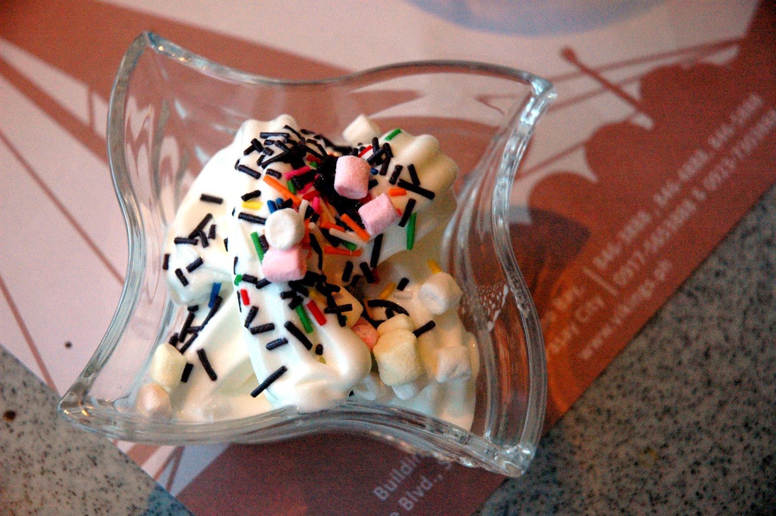 Yogurt? Pour yourself a heaping bowl with the self-serve yogurt dispenser, and top it with marshmallows and chocolate sprinkles.
