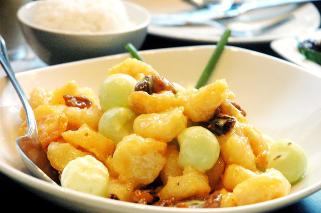 Shrimp with Candied Walnuts, sweet crisp shrimp with honeydew melon balls and crunchy walnuts. The combination of flavors and textures in this one dish is amazing, another personal favorite.