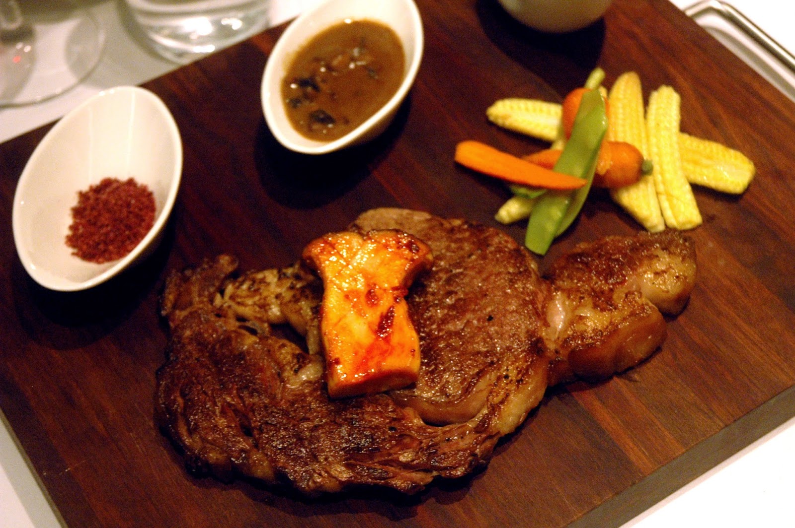 And it was time to meet Angus. Madison's Bistro Moderne's impressive grass-fed Angus dry-aged Ribeye (P 1,680/300g), topped with a grilled mushroom, served with vegetables and cauliflower gratin, with mushroom butter sauce, bernaise sauce and premium pink seasalt on the side. As for the presentation, there's nothing better than a premium slab of meat on a wooden board. And how was the steak? This was gone in minutes...