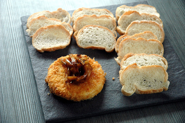 Crisp on the outside, soft and creamy inside, a perfect blend of flavors and textures. Add some sweet caramelized onions and grilled honey green apples with the camembert on the crostini, and...yum.