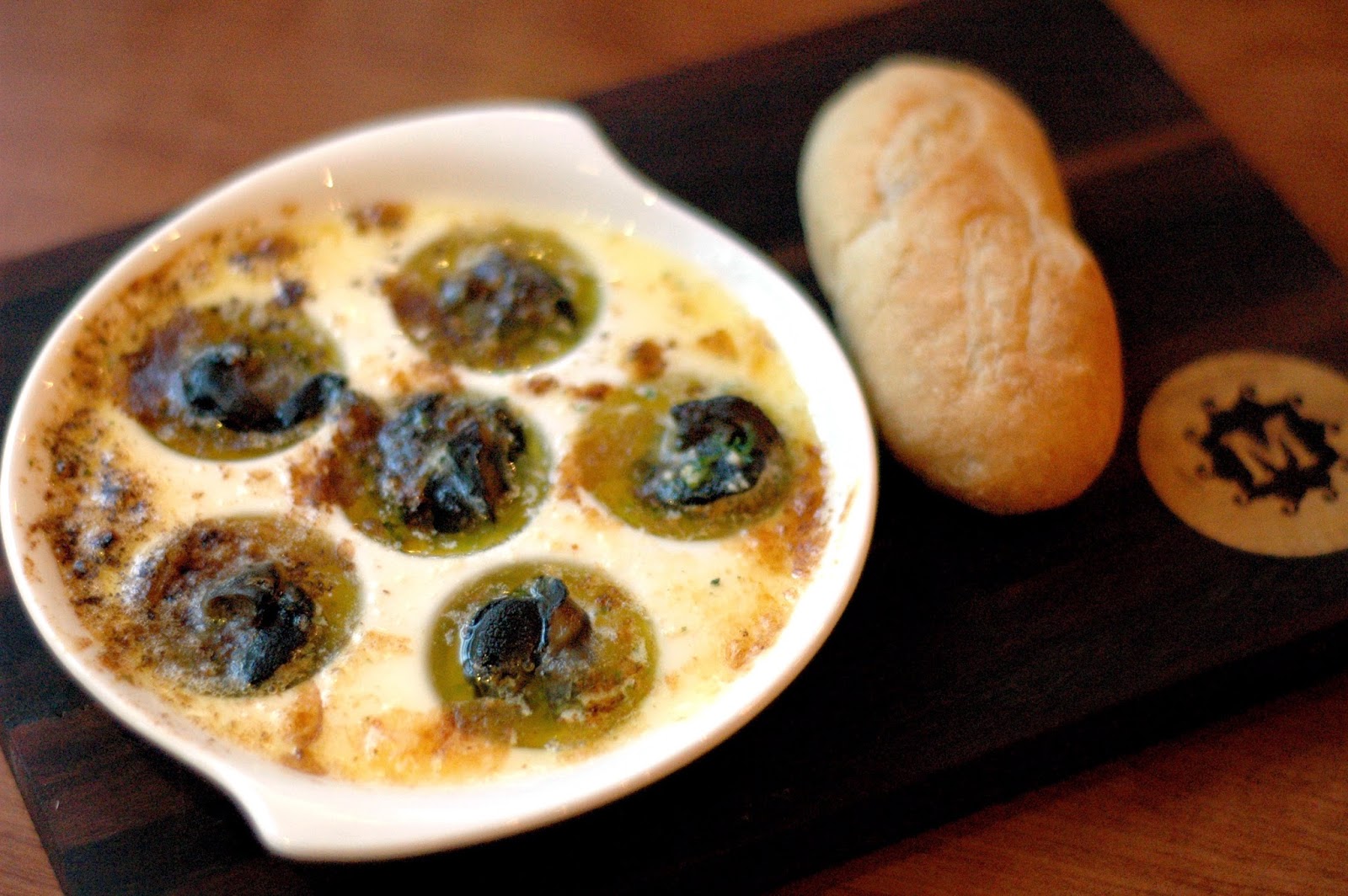 To pair with your cocktails, Mesclun includes a mouthwatering selection of some of their bestsellers to Lush Hour, including selected appetizers, flammerkeuche Alsatian-style flatbread pizzas, and sourdough pizzas. Start with Mesclun's signature Escargots (P 345), French snails in rich garlic parsley butter, served with a crisp baguettine. The garlic parsley butter adds a rich layer of flavor to the succulent snails in this classic French dish, and just perfect with wine. Or cocktails. Or beer. Mesclun serves some of the best classic European inspired dishes in the metro, and Lush Hour is a perfect time to sample Mesclun's rich flavors (for more on Mesclun's dishes, check out my previous post here at http://dude4food.blogspot.com/2012/12/a-mix-of-flavors-at-mesclun-restaurant.html). And don't forget to dunk a piece of the baguettine in that rich garlic parsley butter...