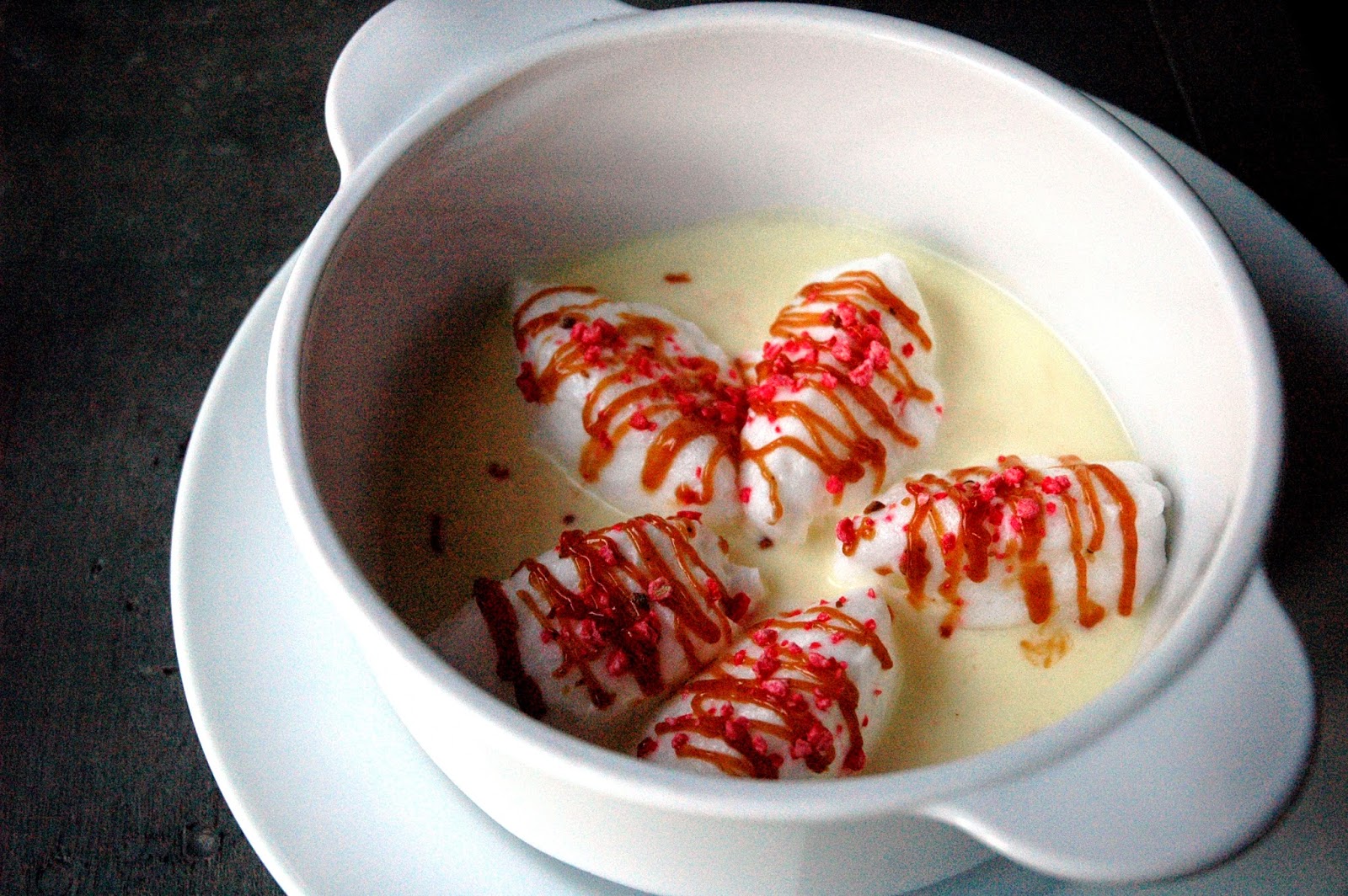 ...Floating Island, with praline and creme anglaise...