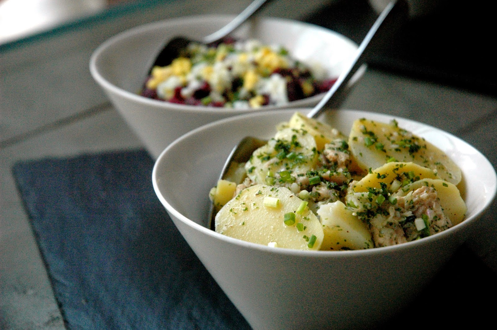 ...Beetroot with Sour Cream, Salad of Pork Sausage, Onions and Vinaigrette, French Green Beans with Vinaigrette, and Salad of Lentils with Shallots, Onions, and Parsley Vinaigrette.