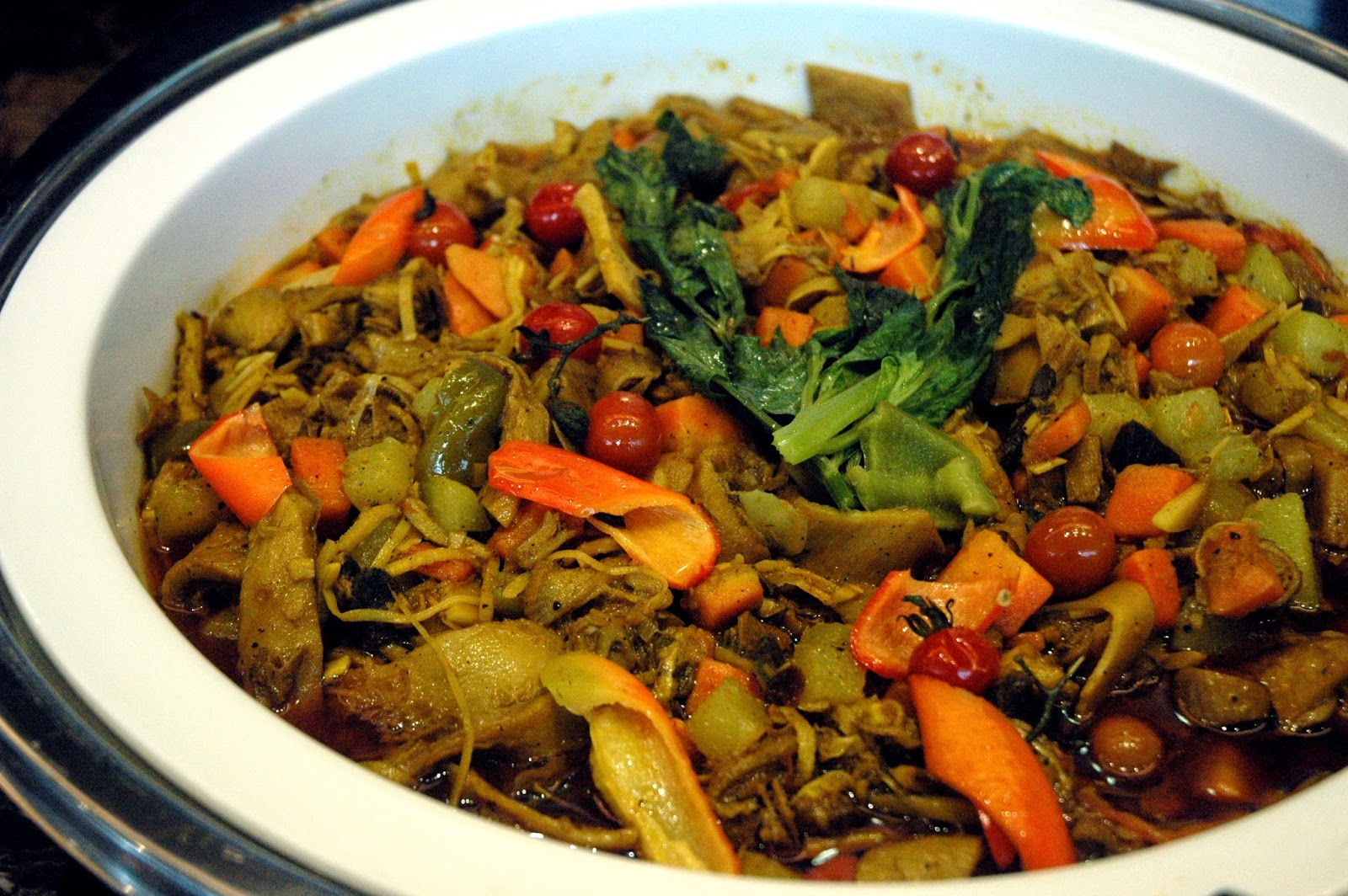 Grab your second plate continue on your culinary journey of the Philippines with Mindanao's savory Paklay, a rich stew made with beef and pork innards, including tripe, liver, and heart in a rich bright red sauce colored with annatto.
