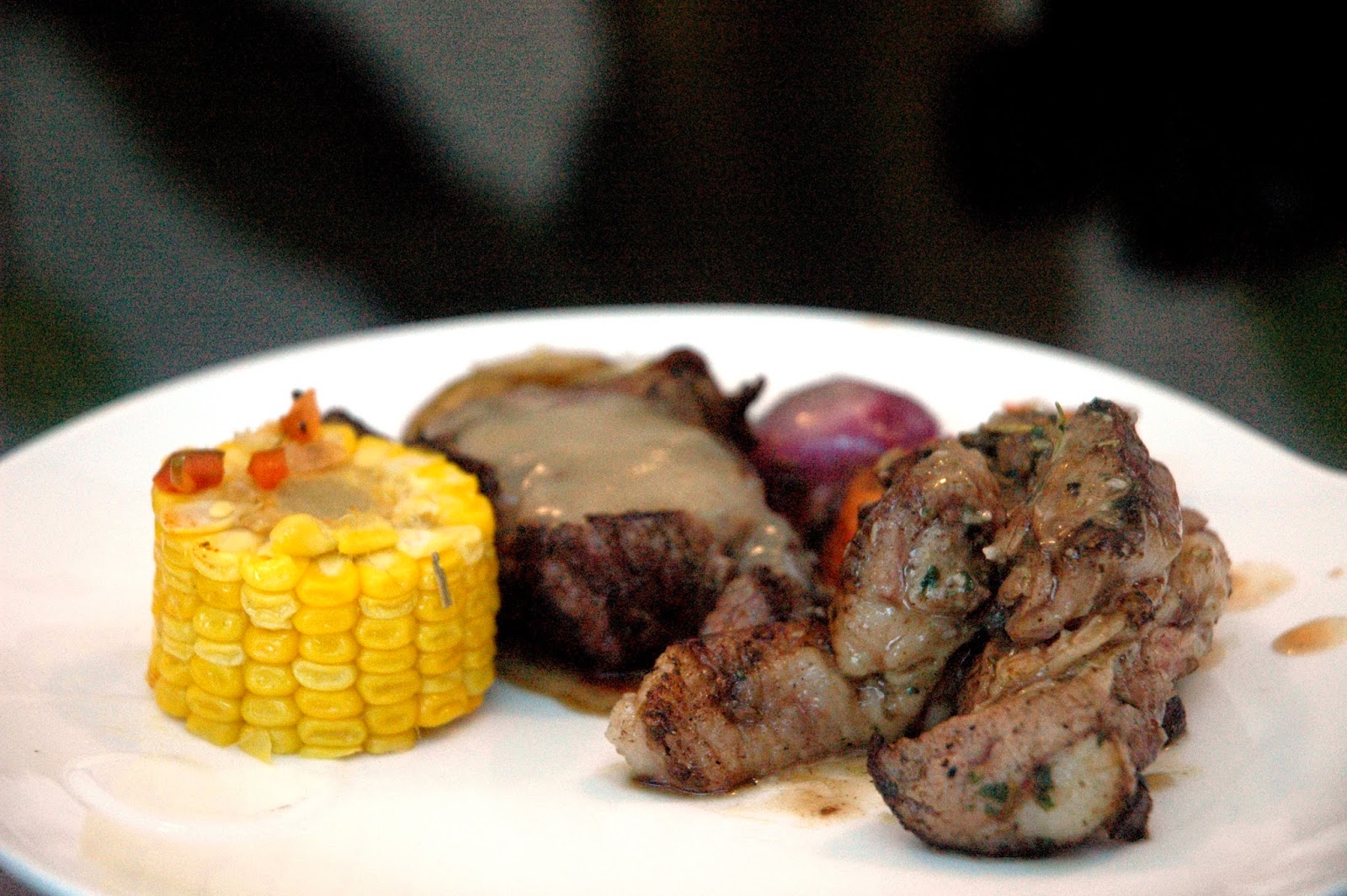 Sampling portions of the mains for the themed 4th of July menu were also served, including (from lower left) Hawaiian Chicken BBQ, New Orleans Seafood Gumbo, and tender Beef Brisket with Roasted Bell Pepper. The spicy Gumbo, with fresh seafood in a rich and flavorful broth, creatively served on a shell, adds a cool touch. I enjoyed the presentation of the themed dishes, with so many flavors in one platter.