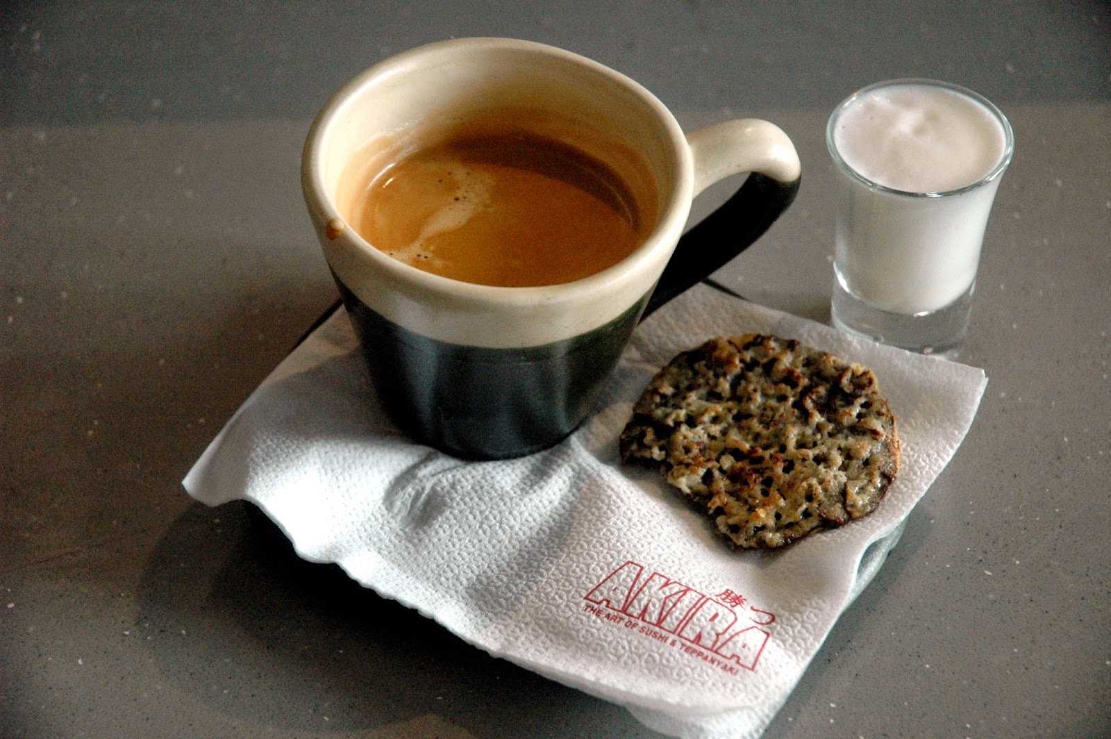 End your teppan feast with a cup of Akira's rich brewed coffee, served with warm milk and a thin Belgian chocolate cookie crisp with mint. At Akira, each and every component adds layers to your dining experience, from the minute you enter the dramatic, postmodern interiors, to the use of fresh and premium ingredients, to the engaging preparation and presentation of your meal, and finally, each flavorful bite with every dish. Like the legendary character of Akira in Japanese fiction, the resident masters of the flame ensure a blazing performance with your teppan experience. Catch Akira's Teppanyaki Group Specials, only until August 31, 2014.