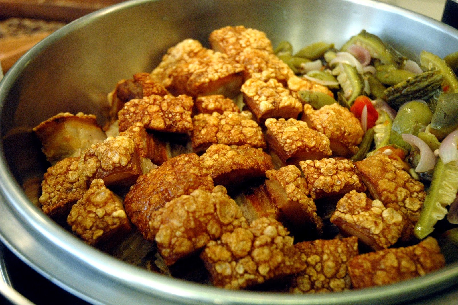 Bagnet, the popular and iconic crispy pork belly crackling served with assortment of steamed and grilled vegetables with shrimp paste...seriously good.