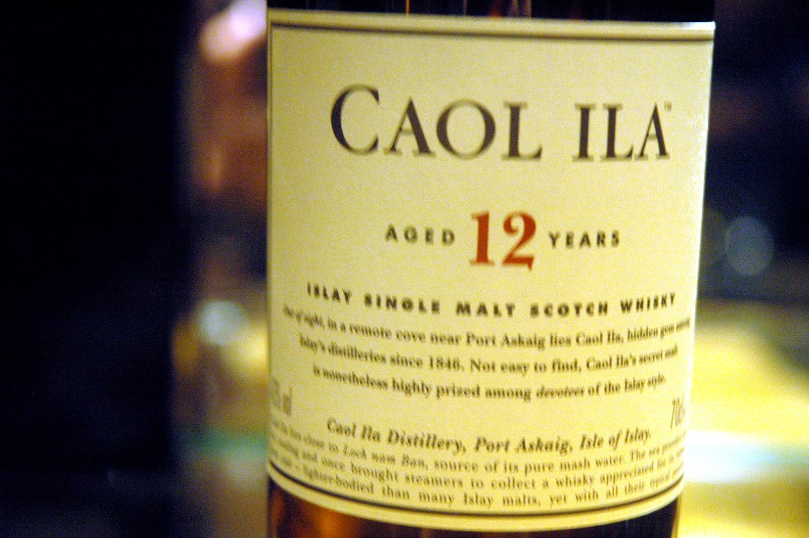 The Caol Ila 12 year Old Single Malt Scotch Whiskey (pronounced "Cull Eela", the gaelic name for the Sound of Islay), a pale amber single malt with smooth and pronounced smokiness, with hints of floral and peppery flavors combining for that unique shot of distilled elegance in a glass. Definitely one of the rare gems in single malts, Caol Ila is one of those new personal discoveries to add to your single malt experience, and a personal favorite.