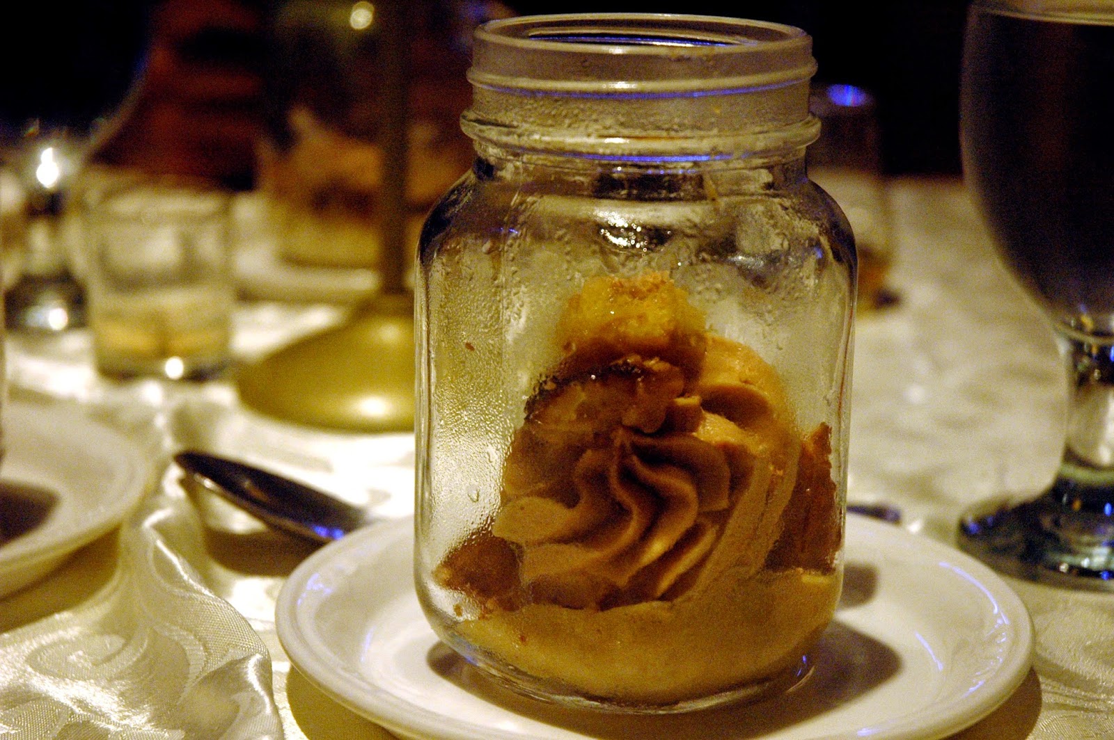 Elvis in a Jar, Matt Basile's homage to the King's favorite banana and peanut butter sandwich, reinvented and served in a jar, is served for dessert to cap Matt Basile's Kitchen Revolution Tour dinner. Soft and chewy rum French toast with maple syrup layered with sweet bananas and draped in rich peanut butter cream...just can't get better than that. But it does. Pour a shot of the premium Balvenie Peated Cask Aged 17 Years single malt, mix gently, and scoop it up for some amazing flavors in a jar. The deep, smoky notes of The Balvenie Peated Cask Aged 17 Years add that extra richness, balancing the sweet and creamy peanut butter and maple.
