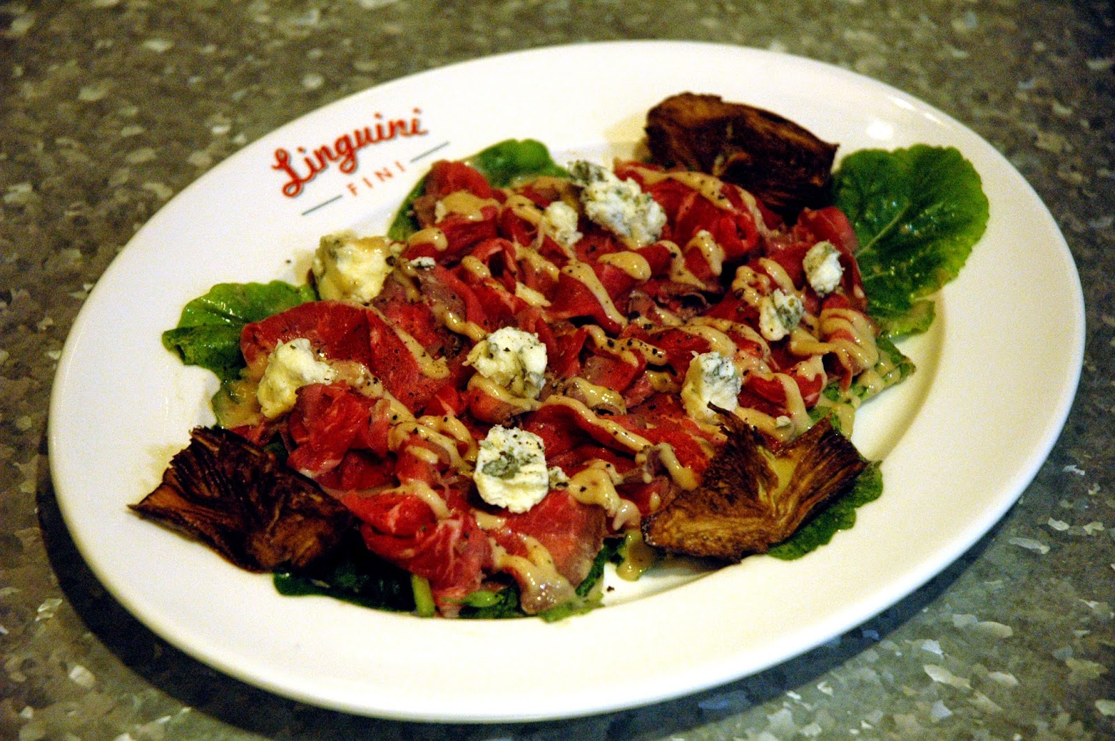 Our meal starts with one of Linguini Fini's antipasti, the Straccetti di Manzo (P 495), with thin strips of seared rare beef slices on artichokes and arugula topped with gorgonzola and drizzled with anchovy aioli. A simple dish, yet almost immediately, you can already taste one of the core values of Linguini Fini, that premium organic ingredients deliver the best flavors, no matter how simple the dish.