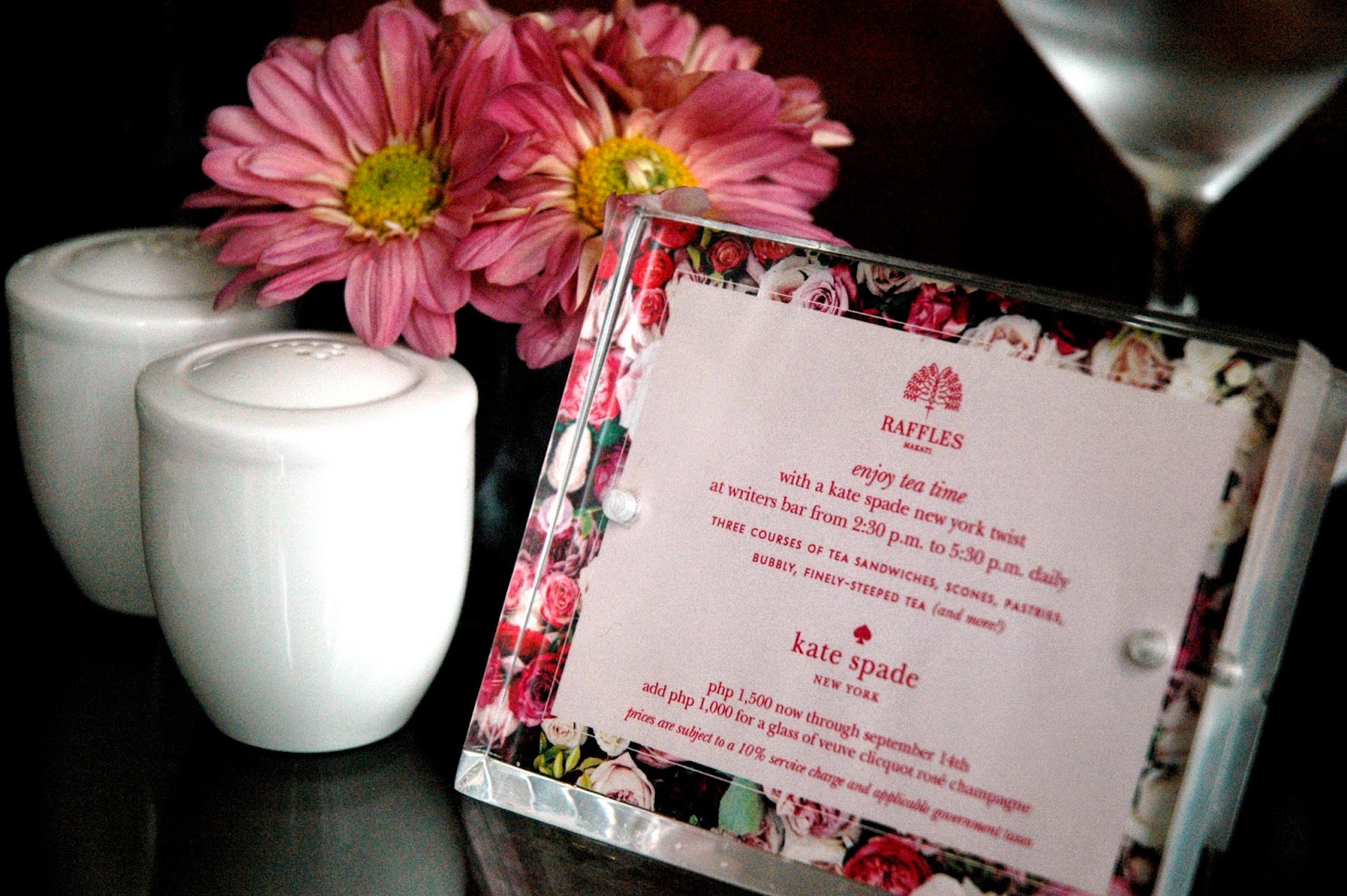 The Kate Spade Afternoon Tea at Writers Bar is us priced at P 1,500 good for two, available from 2:30pm to 5:30pm daily, extended until November 30, 2014. You can also add P 1,000 to upgrade your tea with a glass of Veuve Clicquot Rose Champagne. The world definitely seems like a much a better place after tea at Writers Bar...