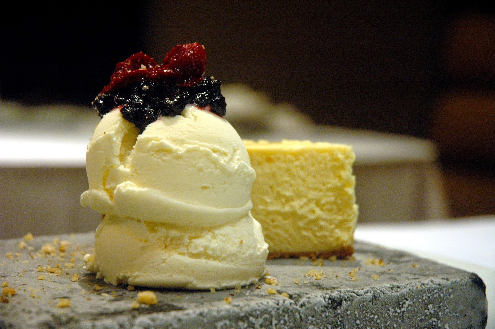 House of Wagyu Stone Grill's creamy Cheesecake (P 270), with a side of vanilla ice cream topped with berries. I've always preferred a New York-style cheesecake, an uncomplicated but indulgent slice of pure cheesecake bliss, with berries on the side, not on top.