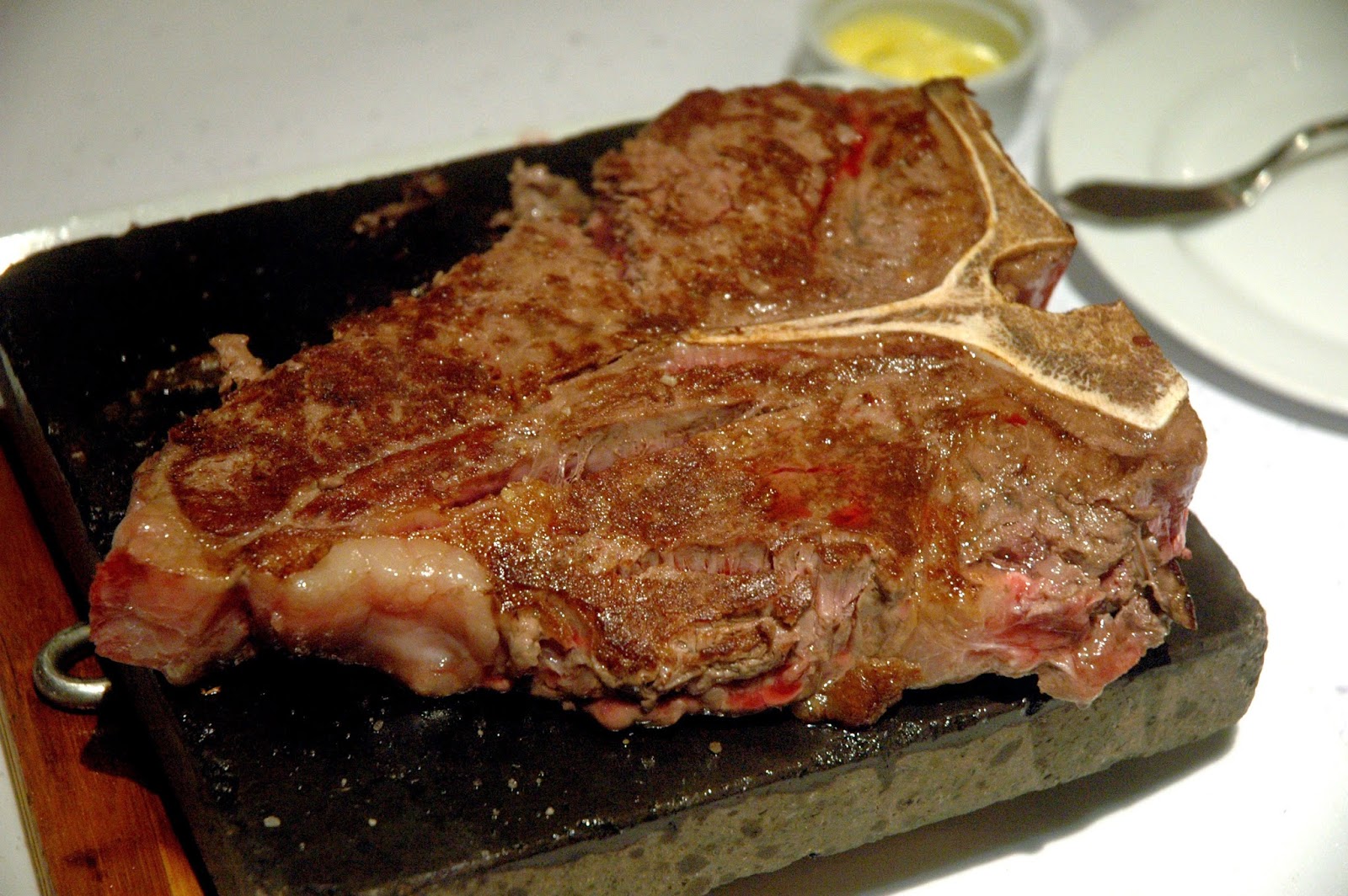 The hefty Wagyu Porterhouse (P 3,750-750g), is then presented and served. As the steaks sizzle on the hot stone, your primordial instincts are triggered, but you'll just to wait a few more minutes...