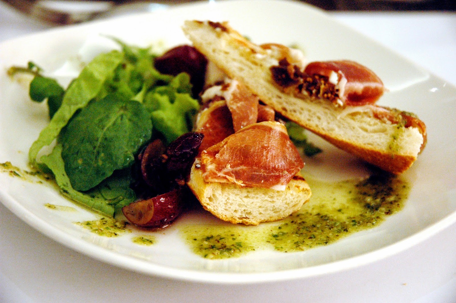 Executive Chef Johnny Rodriguez then served his Jamon Serrano, cured Spanish Ham on grilled baguette with French goat cheese, warm red grape vinaigrette, basil pesto and dried figs. The fresh mesclun greens add both flavor and texture to the dish, with the nutty notes of the basil pesto adding its own layer of flavor.