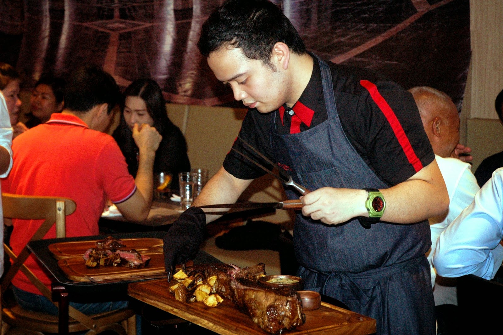 Chef Chele presented ArroZeria's impressive Tomahawk (P 575/100g), premium grass-fed Angus bone-in rib steak served with potatoes, mushrooms, mustard, blue cheese, and spinach cream sauce. There's just nothing quite like a premium slab of beef served on a wooden board to bring out your long dormant primordial instincts. And this one tastes as good as it looks.