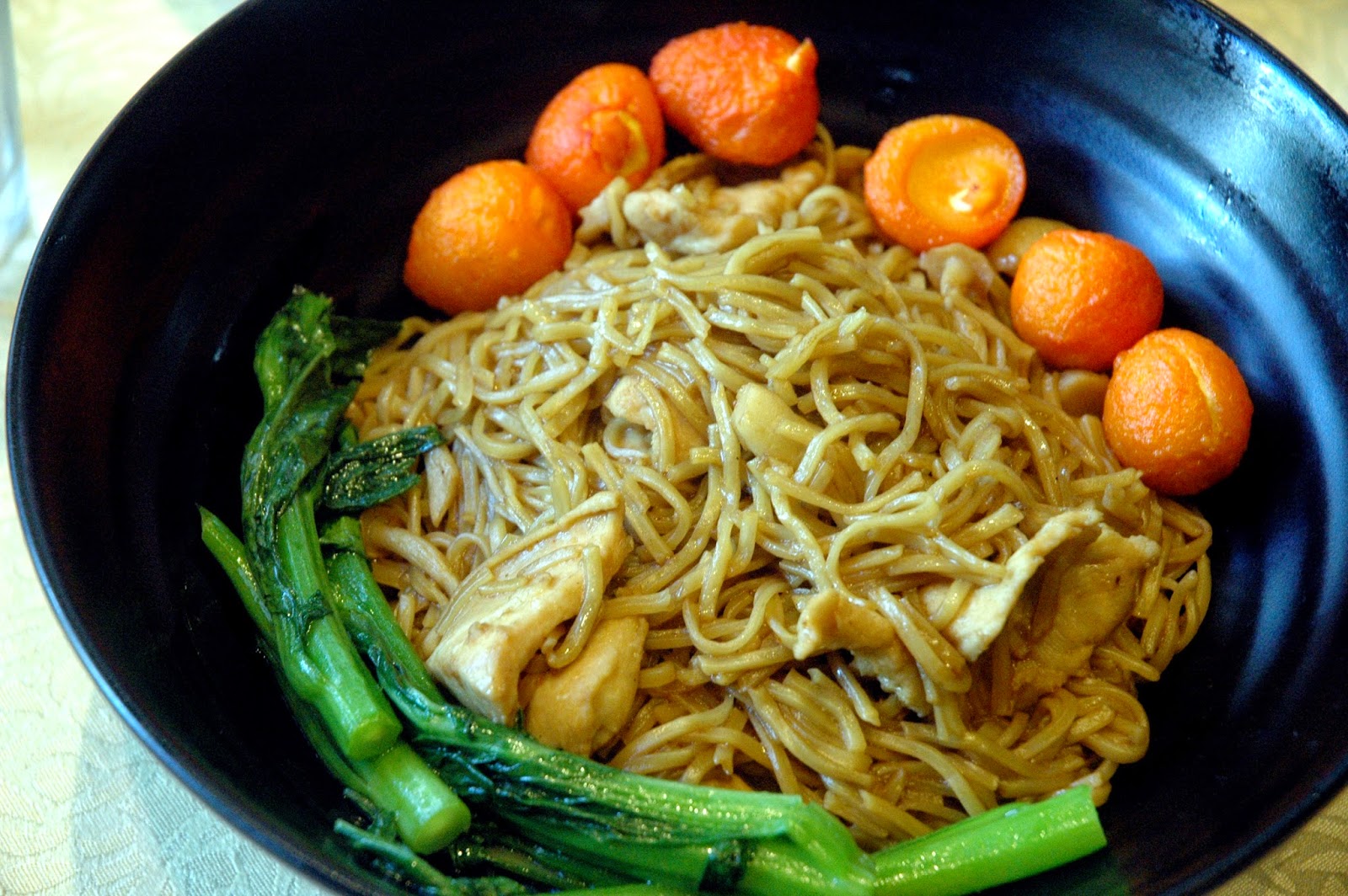 A bowl of Birthday Noodles completes the feast, soft noodles with vegetables, chicken, mushrooms, and quail eggs. Each noodle is coated with a light yet flavorful sauce, pairing well with the fresh vegetables. And those lightly breaded quail eggs, capping the dish with its rich flavors.