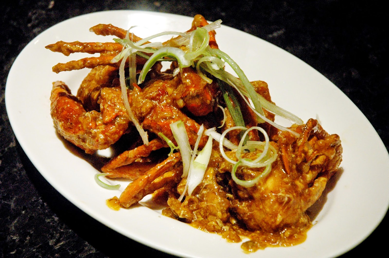 Continue your seafood feast with Singaporean-Style Crabs, fresh crabs lightly fried and draped in a thick sweet and spicy sauce, its rich flavors seeping in the cracked crab. The fresh and clean flavors of the crab are kicked up by the sauce, and go ahead, use your hands...