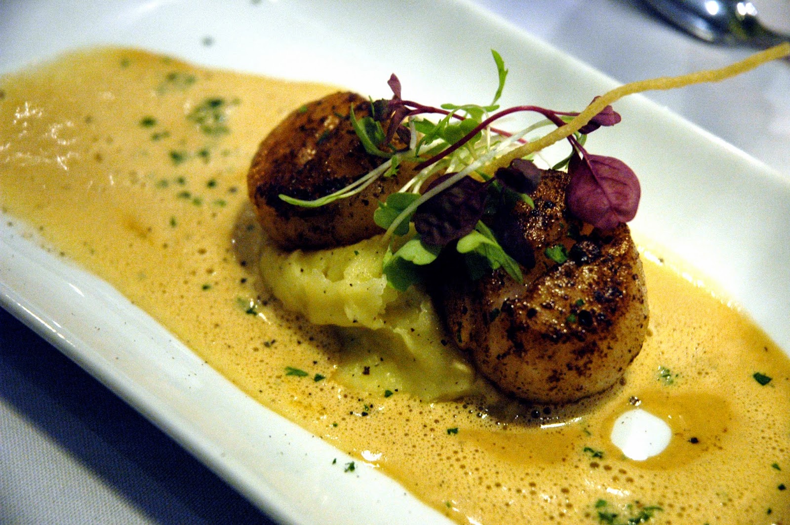 ...and the Coquilles St. Jacques Poelees Puree De Pommes De Terre Aux Truffes, seared scallops with truffled mashed potatoes. Le Jardin offers eight hot appetizers, including a duck confit salad, house-smoked salmon, crab tartare, fresh tuna, black pudding and an egg and bacon salad, and six cold appetizers, such as sauteed prawns, lamb lasagna, cabbage-stuffed duck confit, and French Riviera-style fish soup. Each appetizer is meticulously prepared, from the rich sauces and other individual components, to the final plating. The chain of experiences that start when you enter Le Jardin and greeted with a smile, continue with each and every dish, building up to the main dish.