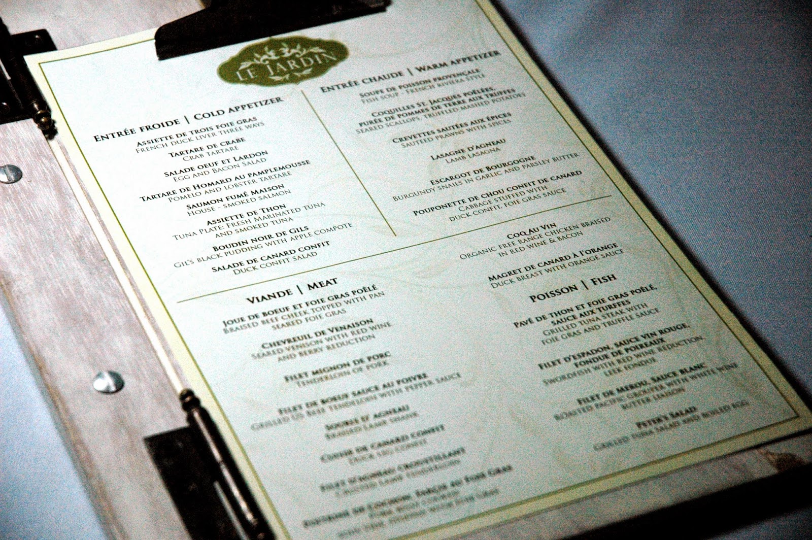 Le Jardin is the culmination of chefs Jonas Ng and Hasset Go's apprenticeship with renowned French chef Gils Brault of Trois Gourmands, guided by the philosophy of authentic French cuisine made with the finest and freshest ingredients, slow-cooked and made from scratch for rich and rustic flavors.
