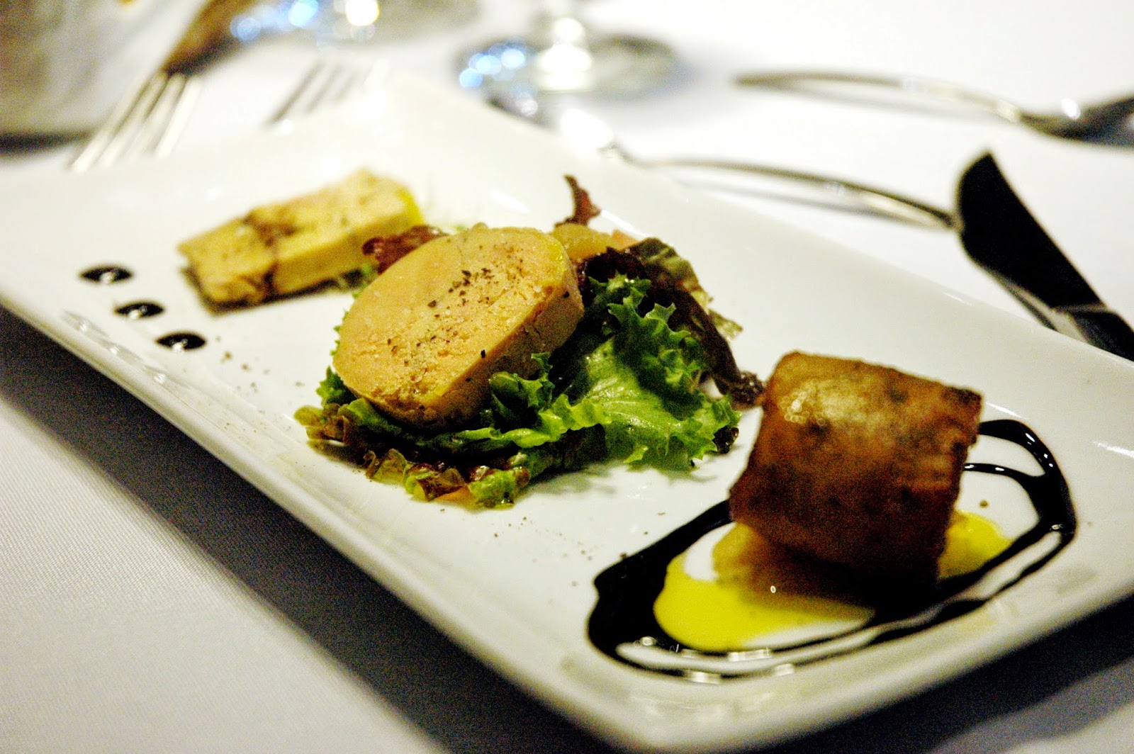 Le Jardin offers three, four, and five course set menus, including hot and cold appetizers, a main dish, and dessert. For my first cold appetizer, or Entree Froide, I go for the Assiete De Trois Foie Gras, French duck liver served three ways, elegantly plated and presented. The trio included the classic foie gras on fresh greens, a foie gras terrine, and a crisp spring roll drizzled with balsamic vinegar and olive oil, each one presenting a different twist on the rich notes of the duck liver. The rich and distinct notes of the foie gras are given new dimensions of flavor, reflecting the kitchen's playful creativity, with the duck liver laid on a mesclun of greens for pure, clean, and classic flavors, the terrine with its unique texture, and the inventive spring roll with its contrasting flavors and texture, all with one main ingredient, in one dish.
